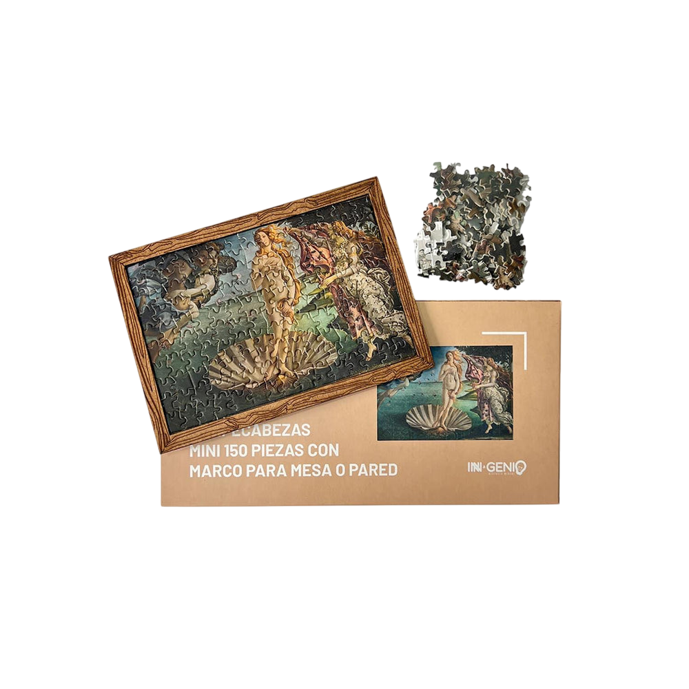 Este rompecabezas mini de 150 piezas que captura “El nacimiento de Venus”. Su diseño delicado y el marco incluido lo convierten en una pieza de arte lista para exhibir. ¡Ideal para amantes de la belleza clásica!